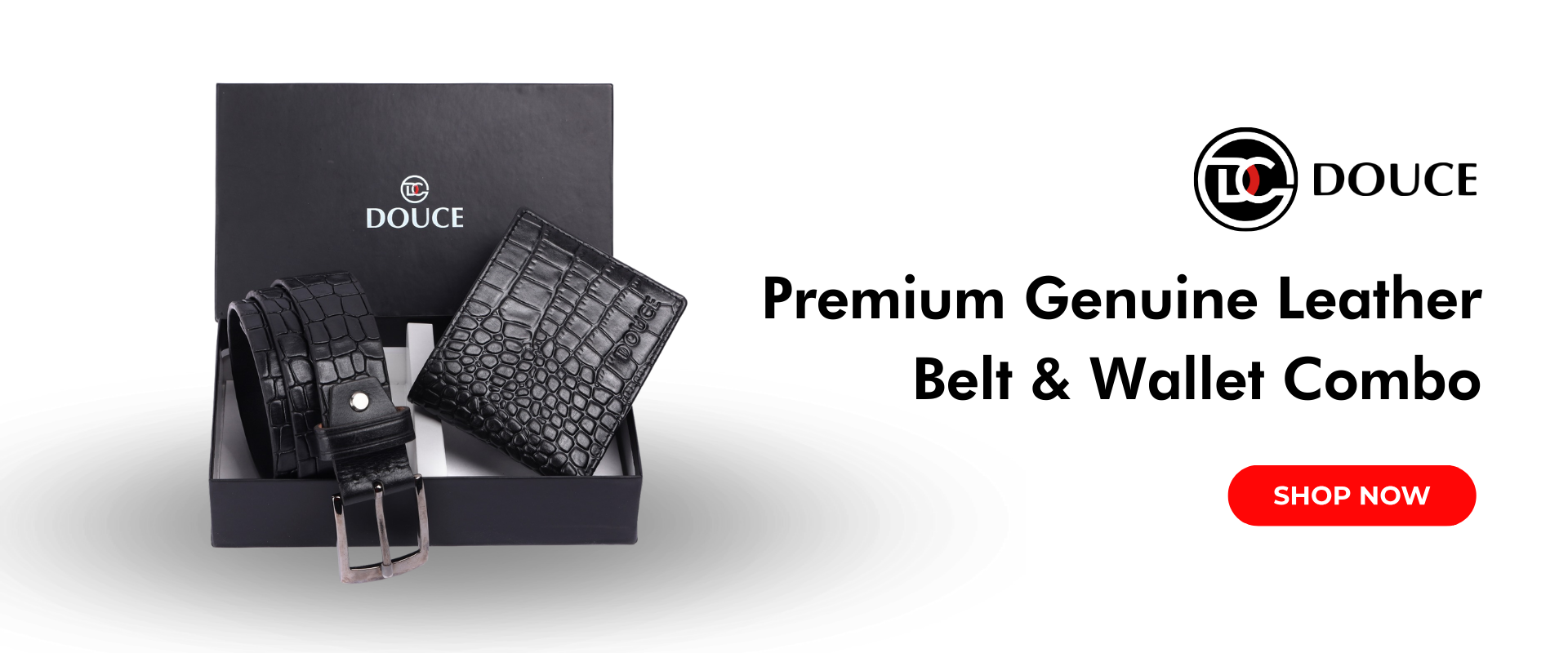 DOUCE Premium Leather Belt & Vegetable Tanned RFID Wallet Combo