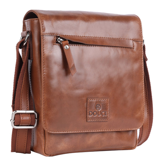 DOUCE Premium Leather Small Sling Bag for Men (Tan)
