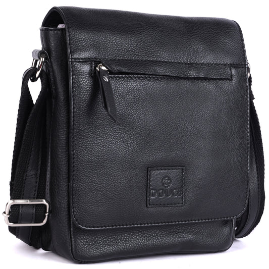DOUCE Men’s Genuine Leather Sling Messenger Bag (Black)