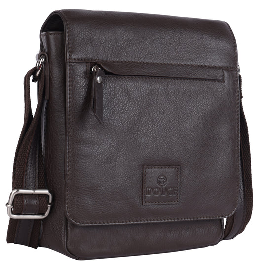 DOUCE Premium Leather Small Sling Bag for Men (Brown)