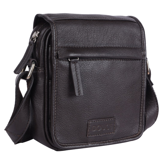 DOUCE Men’s Genuine Leather Sling Messenger Bag (Brown)