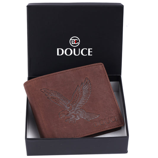 DOUCE Classy Vintage Leather Wallet – RFID Protected (Eagle Embossed Design)
