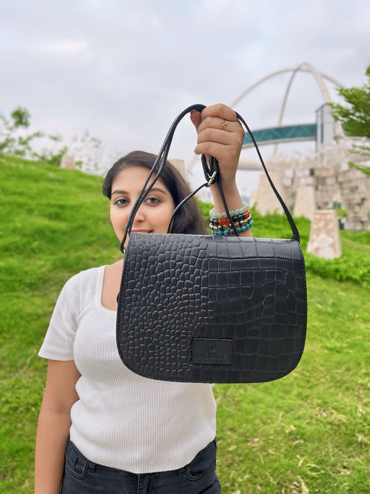 3D Croco Print Leather Sling Bag – Elegant & Edgy | DOUCE