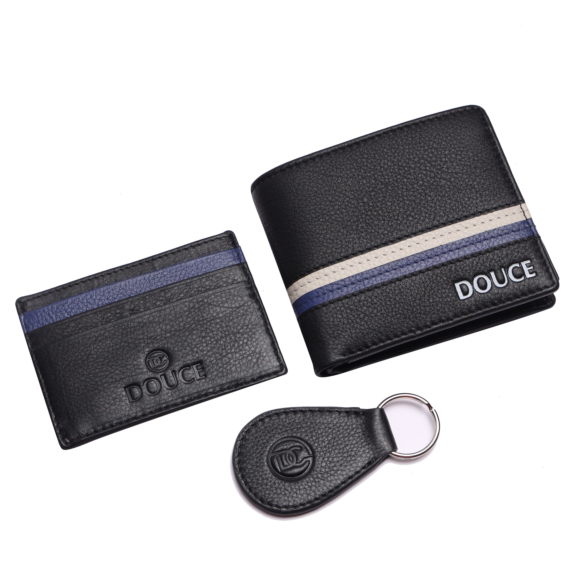 Keep your keys organized with this compact, blue-accented key holder, featuring the Douce logo.