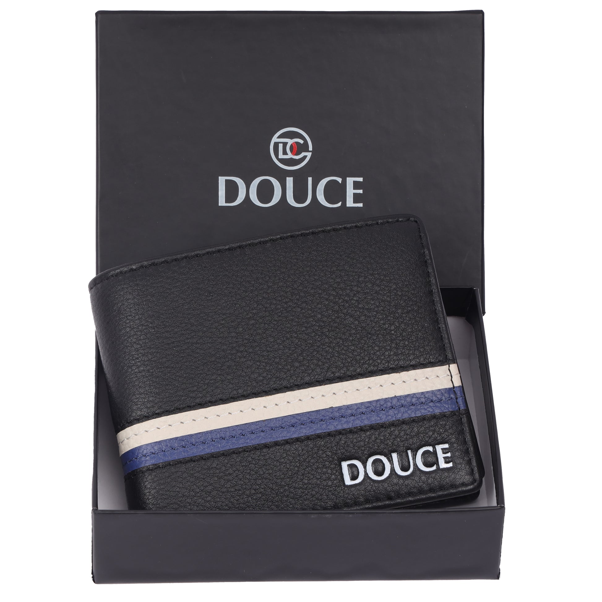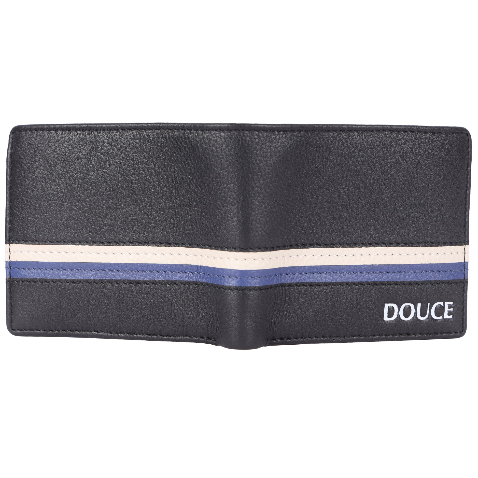 Enhanced with RFID protection and adorned with a striking blue and white stripe, it offers both security and style.